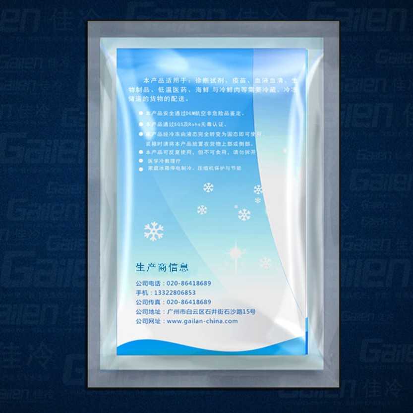 特點:  蓄冷量是同體積冰的6倍,可重復使用且可為客戶定制logo